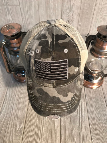 Vintage American Flag Ponytail Hat