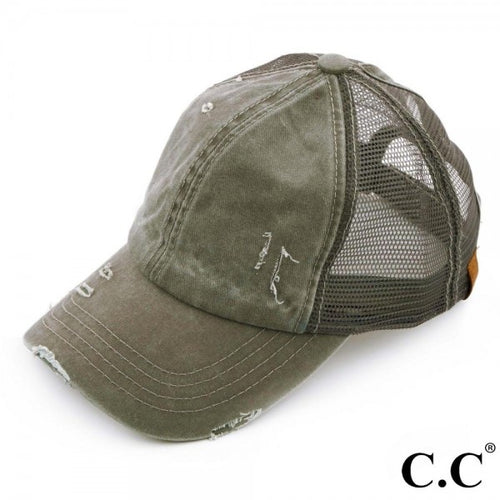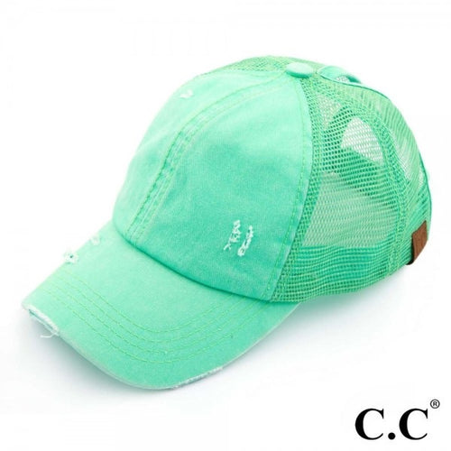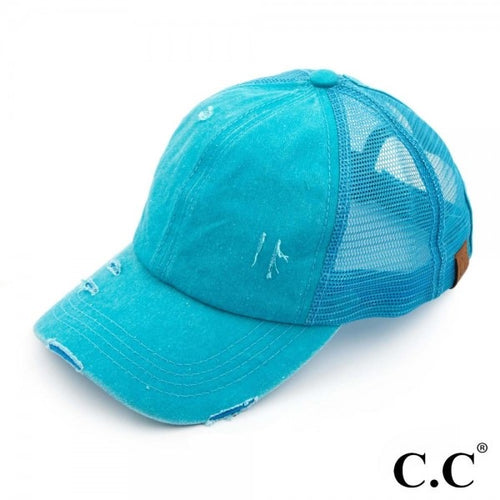 Vintage Distressed Mesh Trucker Ponytail CC Hat
