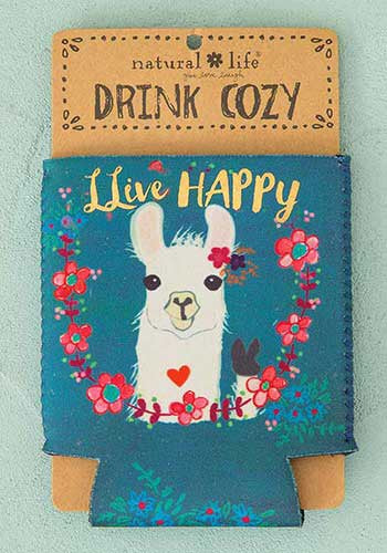 Natural Life - live happy llama neoprene koozie